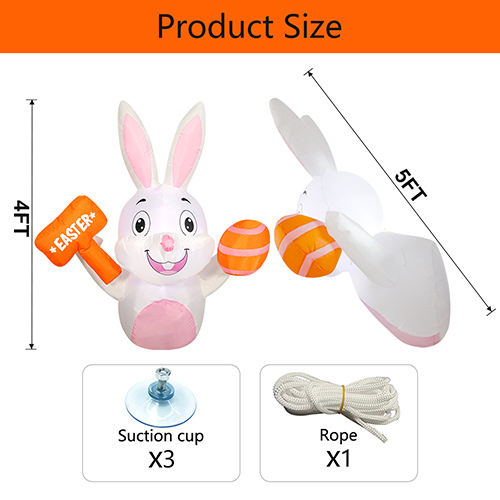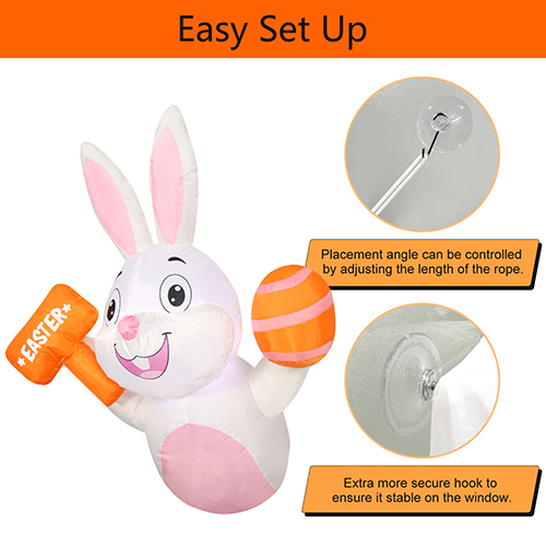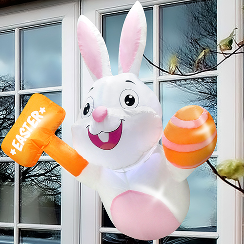 DomKom [2023 New] 5 FT Easter Window Inflatable Bunny Decorations, Build-in LEDs Happy Easter Blow Up Yard Decorations for Holiday Party, Outdoor